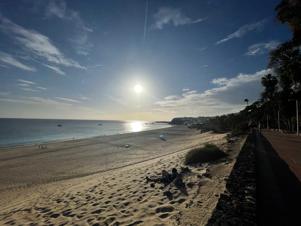 Morro Jable war einmal ein kleines Fischerdorf… Jetzt ist es ein ehemals kleines Fischerdorf mit Fischrestaurants am Strand für Touristen. Der Strand ist wunderbar, breit, goldener Sand, türkis blaues Meer… Mehr als eine Strandpromenade und eine Shoppingmeile gibt es aber nicht. Ah, doch – schönes Wetter, viel Sonne und im Vergleich zum Rest der Insel – wenig Wind.
