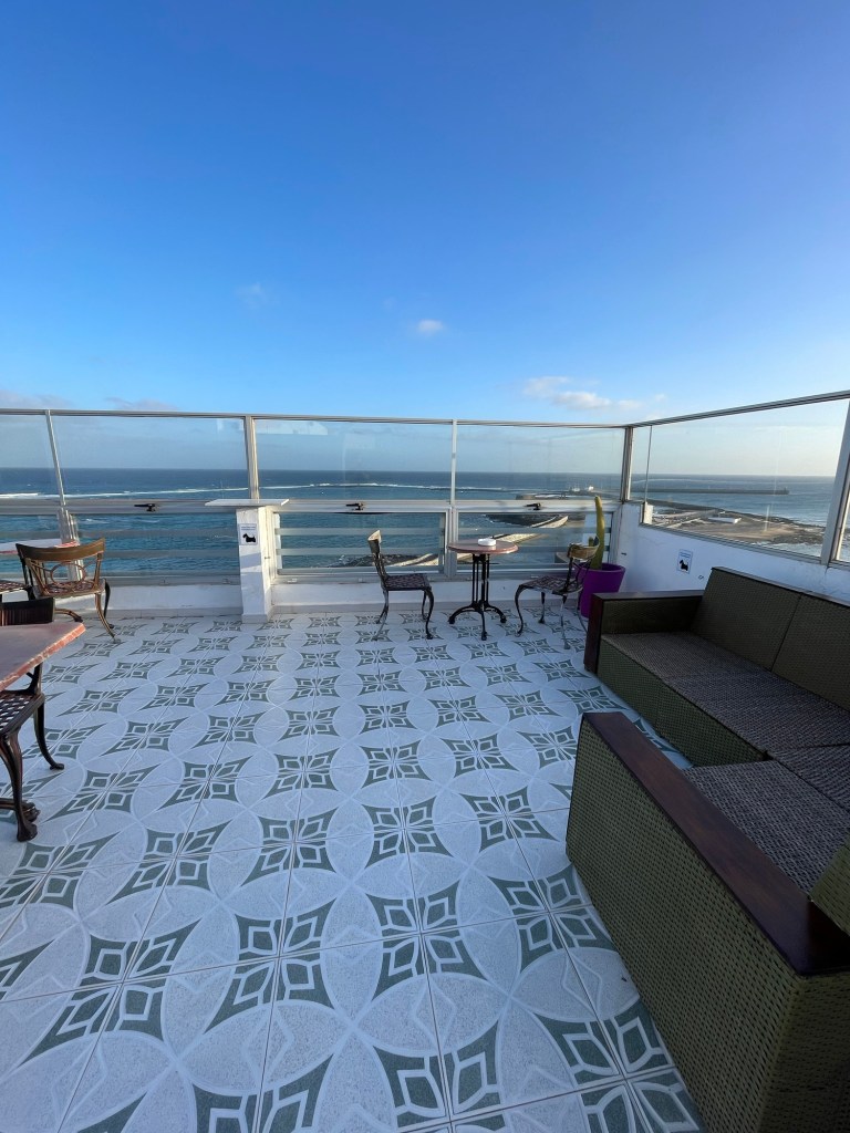 Übernachtet haben wir im Hotel Miramar direkt an der Strandpromenade. Das Hotel hat zwar den Charme vergangener Tage, mit Teppichboden im Zimmer. Es war aber alles sehr sauber und teilweise hatten die Zimmer Meerblick und einen kleinen Balkon. Außerdem gibt es eine Dachterrasse. Dort gibt es nicht nur Frühstück sondern auch Sonnenliegen. Hinterm Haus gibt es 4 Parkplätze, die man kostenlos nutzen kann, mitten in der Innenstadt. Das Frühstück war für spanische Verhältnisse total in Ordnung und der Blick von der Dachterrasse wunderbar.