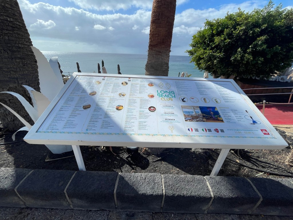 Der Long Beach Club Lanzarote. Dort kannst Du mit den Füßen im Sand aufs Meer schauen und Tapas sowie leckere Getränke genießen.